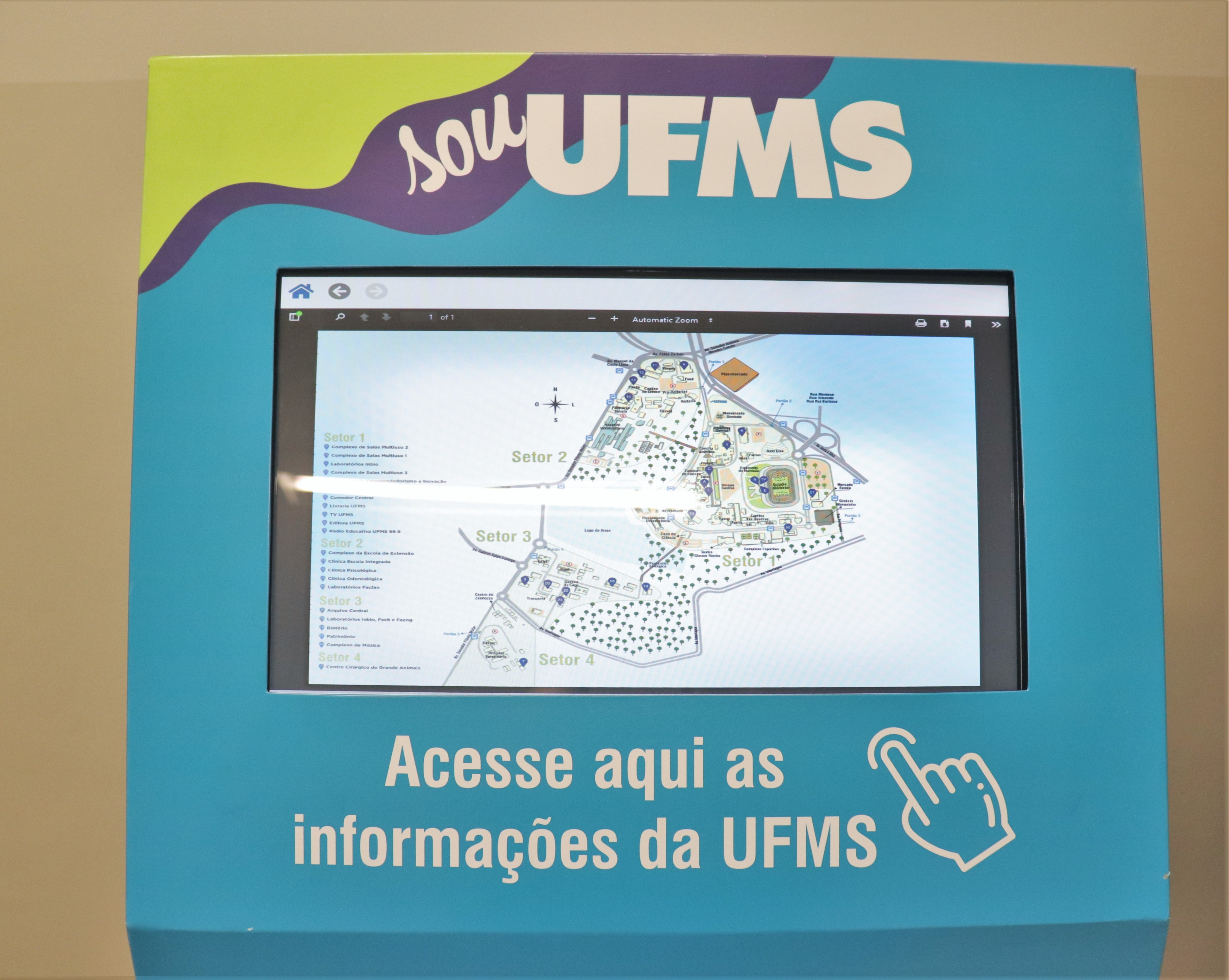 Para auxiliar estudantes, servidores e visitantes, totens digitais “Sou UFMS” para acesso a informações da Universidade foram instalados nos quatro setores da Cidade Universitária. Seis links são acessíveis por meio deles: o Portal UFMS, os portais de ingresso e de pós-graduação, a Carta de Serviços ao Usuário, o Guia do Estudante e o mapa do campus de Campo Grande.